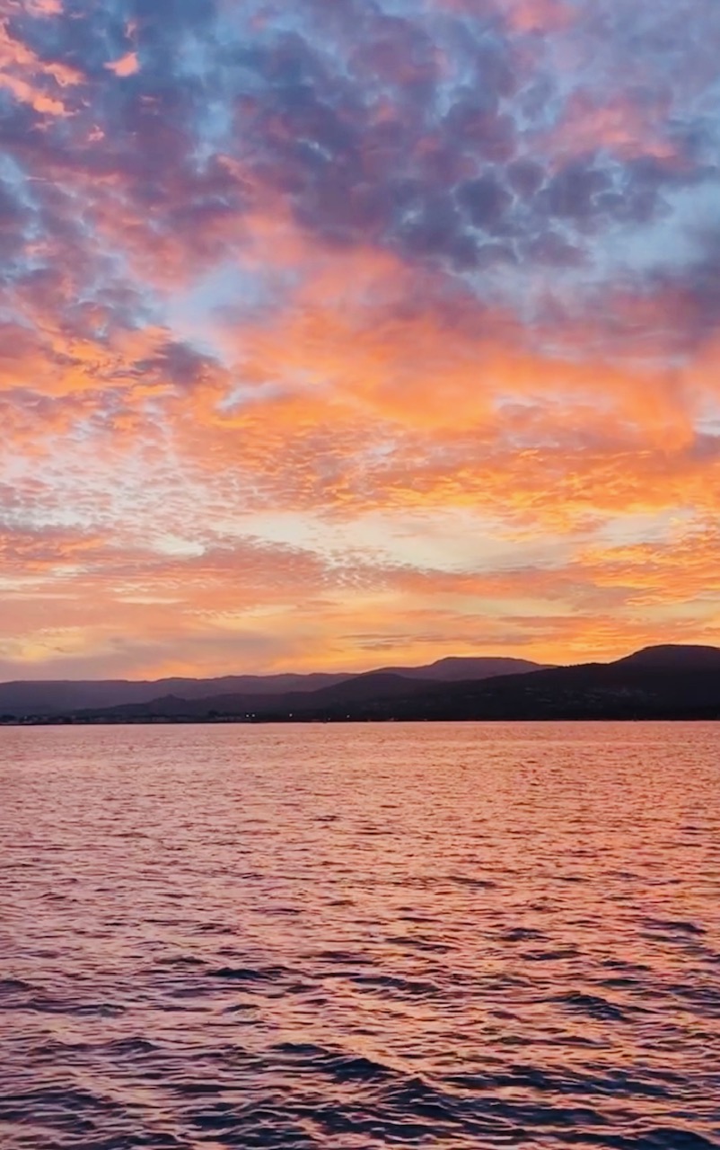 Un moment magique dans le Golfe de Saint-Tropez. Asseyez-vous et détendez-vous avec un verre avec le coucher de soleil sur le massif des Maures.